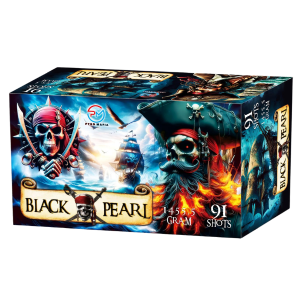 Set sail into the night with Black Pearl, a legendary 91-shot compound firework inspired by the power and mystery of the infamous ship from Pirates of the Caribbean. From the first ignition, Black Pearl by Pyro Mafia roars to life with pounding lifts and rapid-fire salvos that rip through the sky like a cannonade of divine retribution.