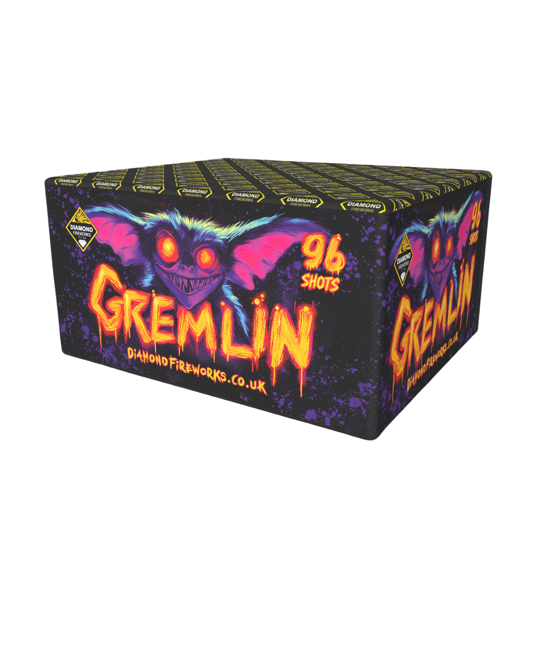 Creeping out of the shadows with a cackle and a bang, Gremlin is the untamed beast of our Spooktacular Firework Range. This monstrous 96-shot 1.3G fan barrage is packed with pure chaos, unleashing wave after wave of explosive colour, eerie glitters, and sinister crown effects that shimmer with menace in the night sky.