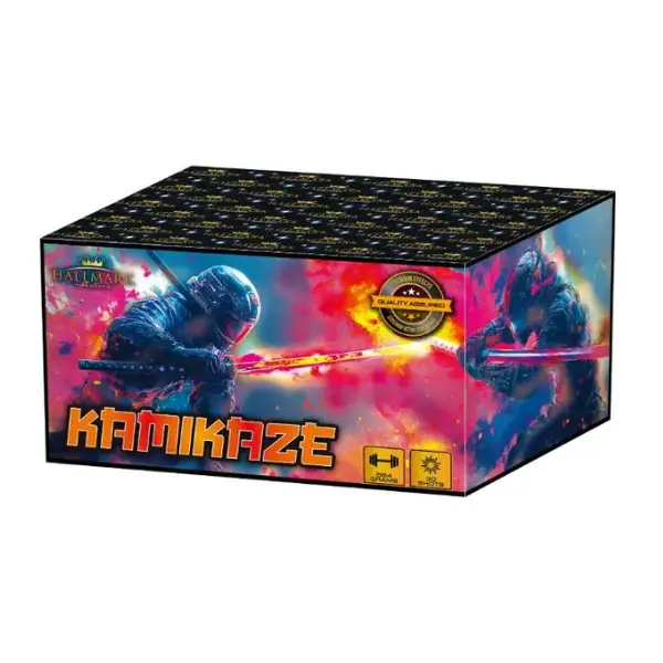 Take a fearless dive into the night sky with Kamikaze by Hallmark Fireworks, a 30-shot 1.3G barrage that delivers an unrelenting aerial assault. With no retreat and no surrender, this powerhouse firework unleashes wave after wave of explosive beauty designed to dominate your celebration.