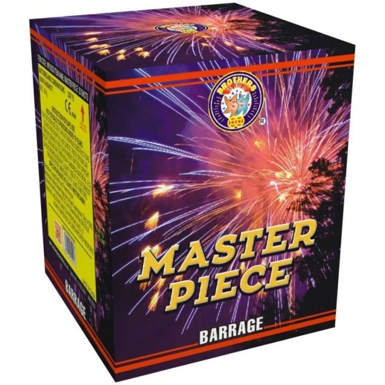 Elevate your display with Master Piece by Brothers Pyrotechnics, a stunning 25-shot barrage firework that blends colour, power, and elegance into one unforgettable show. With 300g of NEC and 1.3G classification, this firework packs a serious punch, making it a favourite for any celebration.