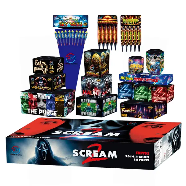 Inside Scream 2, you’ll discover an arsenal of fireworks guaranteed to keep your guests on the edge of their seats. From mesmerising roman candles and explosive rockets to sky-filling multi-shot barrages, this selection box packs variety and spectacle in every single ignition. Expect vibrant colours, dazzling strobes, crackling effects, and thundering bursts that build suspense before unleashing jaw-dropping finales – a true scream-worthy performance.