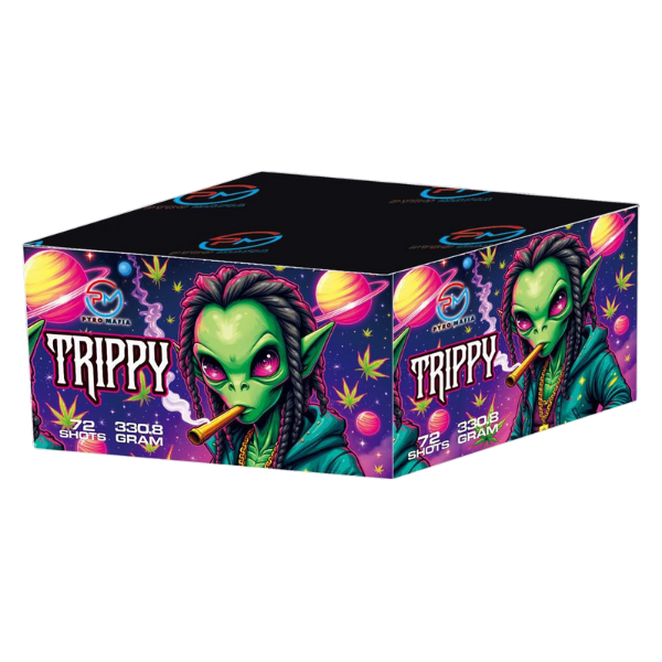 Trippy doesn’t slow down – it builds excitement with every shot. As the barrage fires, you experience a sky full of shifting colours, twisting effects, and crackling bursts that look like a psychedelic trip brought to life. Because of its variety and pace, Trippy transforms any event into an unforgettable show, making it a must-have for firework fans who love bold effects and eye-catching displays.